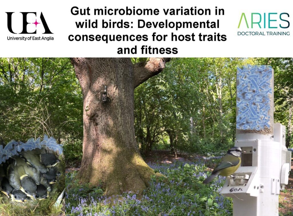 You will study wild populations of great tits and blue tits (Cyanistes caeruleus) in East Anglia, focusing on the nestling and juvenile stages, when microbiome colonisation begins. You will collect faecal samples from birds with natural and experimentally altered gut microbiomes, longitudinally monitor growth, behaviour and cognition (via automated feeders), and analyse microbiome composition using 16S rRNA and whole-genome sequencing. Statistical modelling will test for links between microbes and host development and fitness.